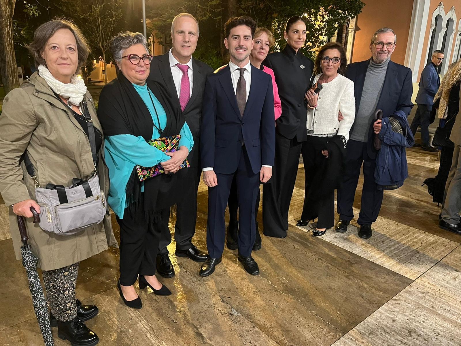 - La familia Hermida junto a los representantes de la Asociación de la Prensa de Huelva y el Centro de la Comunicación Jesús Hermida