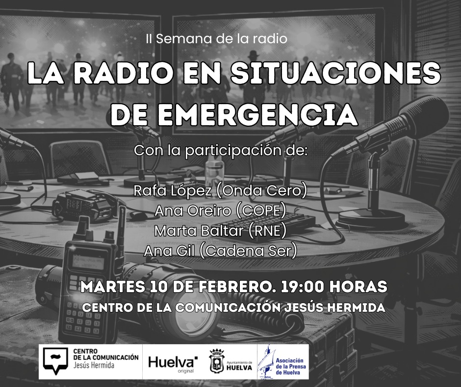 Ese mismo día, a las 19:00 horas, se celebrará la mesa redonda ‘La radio en situaciones de emergencia’, en la que participarán profesionales de distintas emisoras onubenses para analizar la gestión informativa en momentos críticos. Durante la sesión se abordarán cuestiones como la verificación de datos bajo presión, la coordinación de equipos, la función de servicio público y la toma de decisiones editoriales en contextos de urgencia. Intervendrán Rafa López, de Onda Cero; Ana Oreiro, de COPE; Ana Gil, de Cadena SER; y Marta Baltar, de Radio Nacional de España.