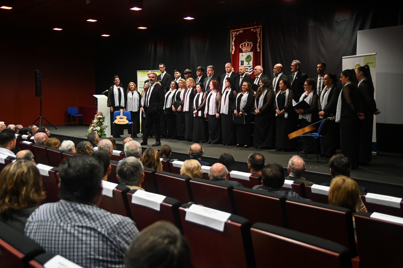 La delegada de Turismo, Terresa Herrera, junto al alcalde de Isla Cristina y ediles de su Corporación Municipal, entrega placa a la Coral Padre José Marabent. Foto de María Pecero.