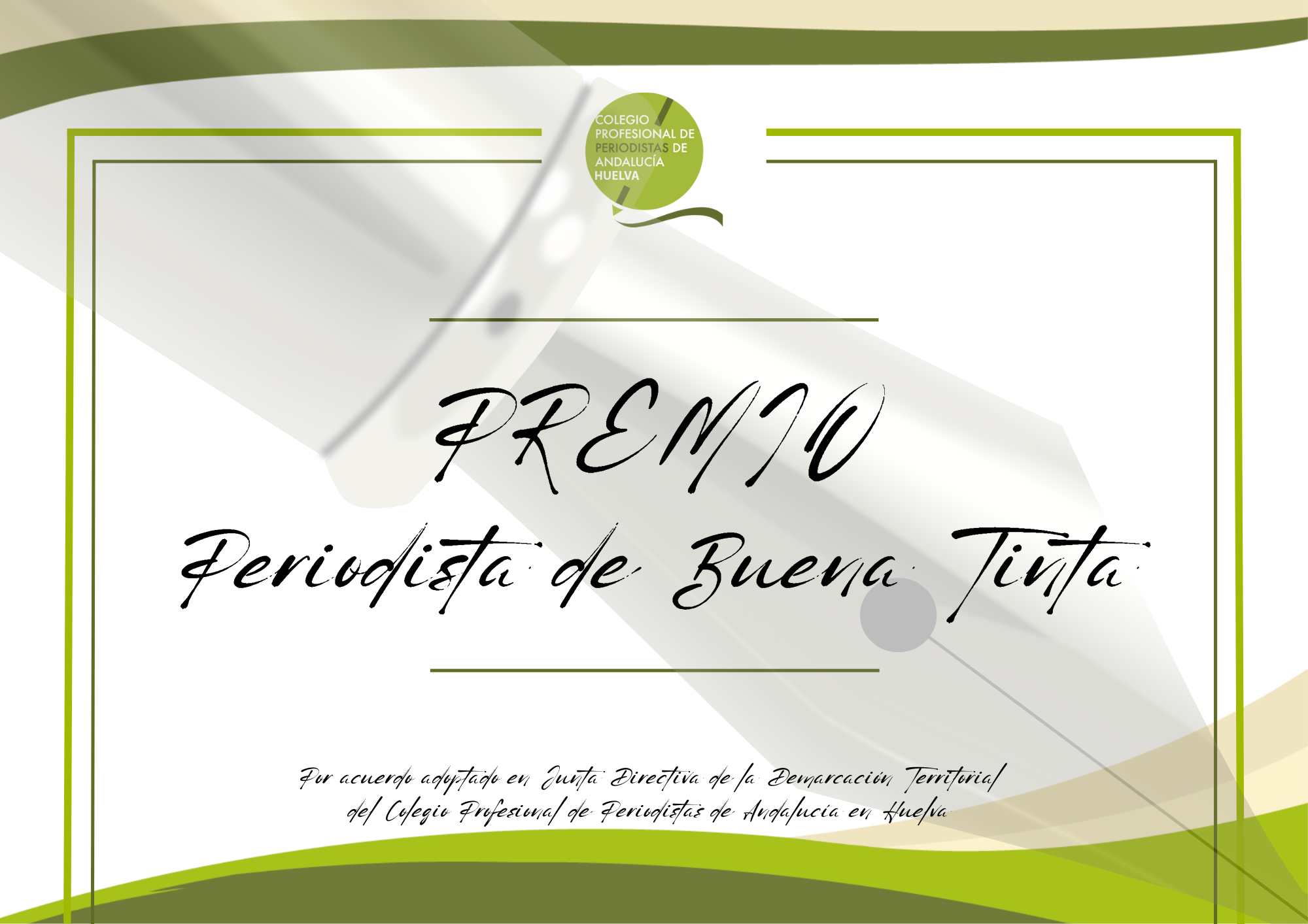 La Demarcación Territorial del Colegio Profesional de Periodistas de Andalucía (CPPA) en Huelva creó en 2018 el Premio Periodista de Buena Tinta que premia la disposición a ayudar, a compartir y a mejorar la profesión como propósito personal y vocacional. Este reconocimiento va más allá de la calidad del trabajo que realiza el profesional. Valora de manera especial la condición de buen colega, generosidad y empatía con los compañeros en el día a día. El premio simboliza el respecto y afecto de la profesión y pone en valor el trabajo vocacional y entrega total del periodista con su profesión y compañeros.