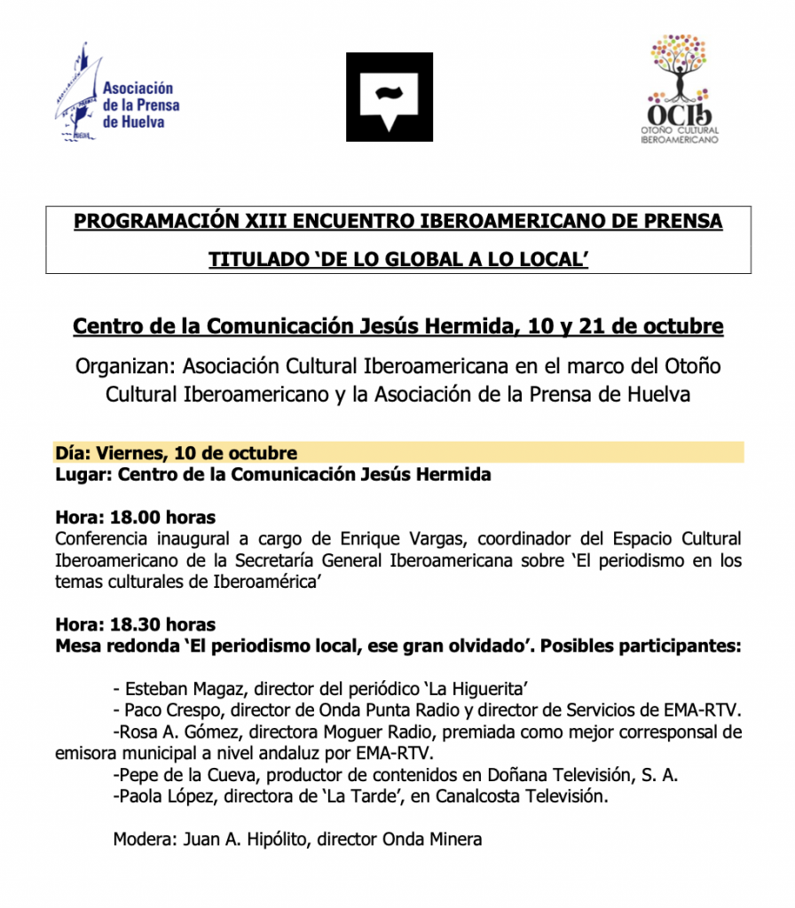 La Sala de la Provincia de la Diputación ha acogido el acto de entrega del premio que ha contado con la presencia del presidente de la Asociación de la Prensa de Huelva, Rafael Terán, y el vicepresidente de la institución provincial, José Fernández, quien ha subrayado el compromiso firme entre la Diputación y la Asociación de la Prensa de Huelva para que se mantenga un certamen “del prestigio de este Premio Huelva de Periodismo, con el que, año tras año, se reconoce la labor de los profesionales y los medios de comunicación en nuestra provincia”.